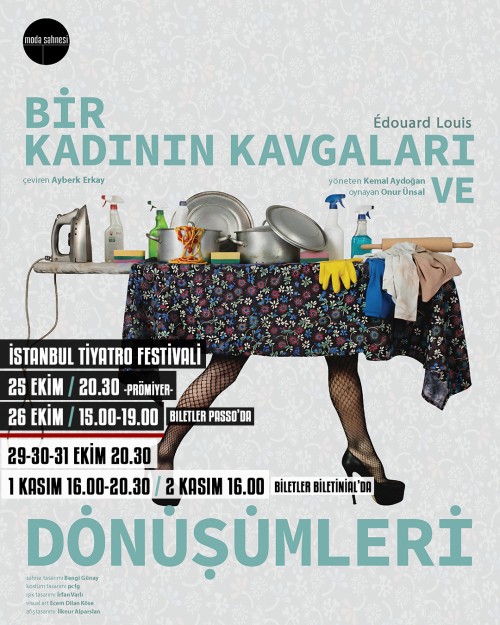 Edouard Louis’in dördüncü eseri bu: ‘Bir Kadının Kavgaları ve Dönüşümleri’. Annesine odaklanmış. Oyun bir fotoğraf ile başlıyor. Annesi henüz ön kamera icat edilmemişken kendinin fotoğrafını çekmiş. O fotoğraf bize bir hayatın kapısını açıyor. Oyuncu sahneye giriyor, annesinin fotoğrafından bize bahsediyor ve bir süre o çarşaflarla kaplanmış, toz içindeki evde geziniyor. Biraz uzun mu sürdü bu evin içinde dolaşma? Aslında sadece mobilyaların değil, bir hayatın içinde gezdiğini anlıyoruz. Annesinin hayatı, onunla yaşadığı anılarının içinde..